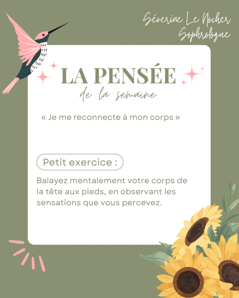 🍃 Chaque lundi, prenez un temps pour vous avec « la pensée de la semaine » : une réflexion inspirante accompagnée d’un petit exercice de sophrologie.