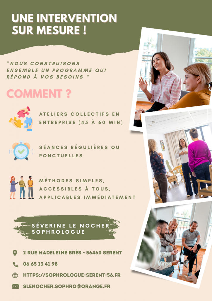 La sophrologie a toute sa place dans le monde du travail, dans les écoles et établissements de formation, les différentes structures accueillant du public, des patients, faites l’expérience !!!